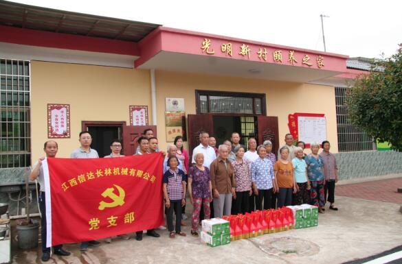 為展(zhan)現(xian)時(shi)代精(jing)神和(he)構建和(he)諧社會(hui)主義,促進社會(hui)主義精(jing)神文明(ming)建設,弘揚民族尊(zun)老敬老的傳統美(mei)德(de),展(zhan)現(xian)黨員深厚的人文關懷,發揮(hui)黨員帶頭先鋒作(zuo)用(yong)。2019年6月(yue)10日(ri)江西(xi)信達長林(lin)公(gong)司黨支部走(zou)進光明(ming)新(xin)村(cun)頤養之家(jia)慰(wei)問送(song)溫暖,為老人們(men)送(song)去了大米、牛(niu)奶、食用(yong)油等(deng)慰(wei)問品。